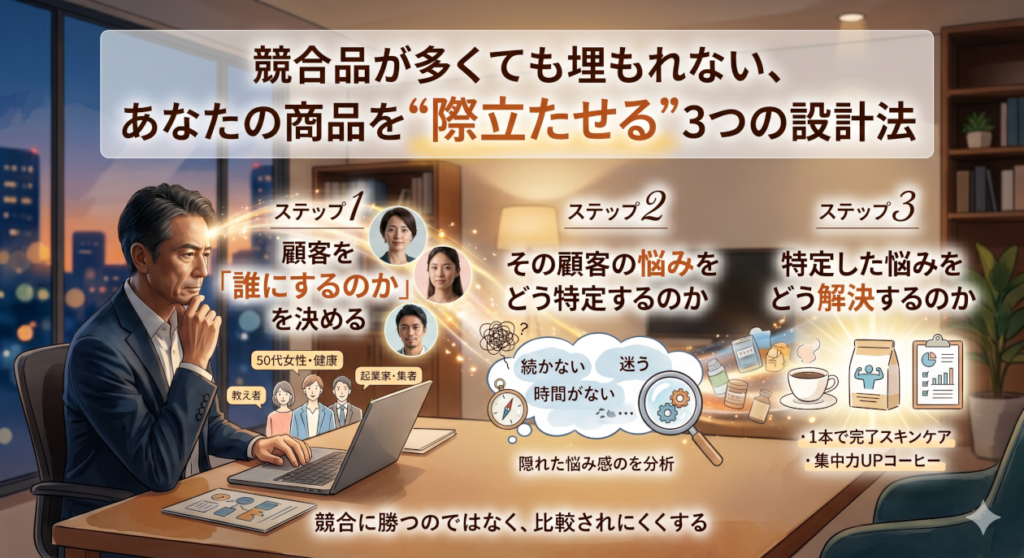 競合商品が多くても埋もれない、あなたの商品を“際立たせる”3つの設計法